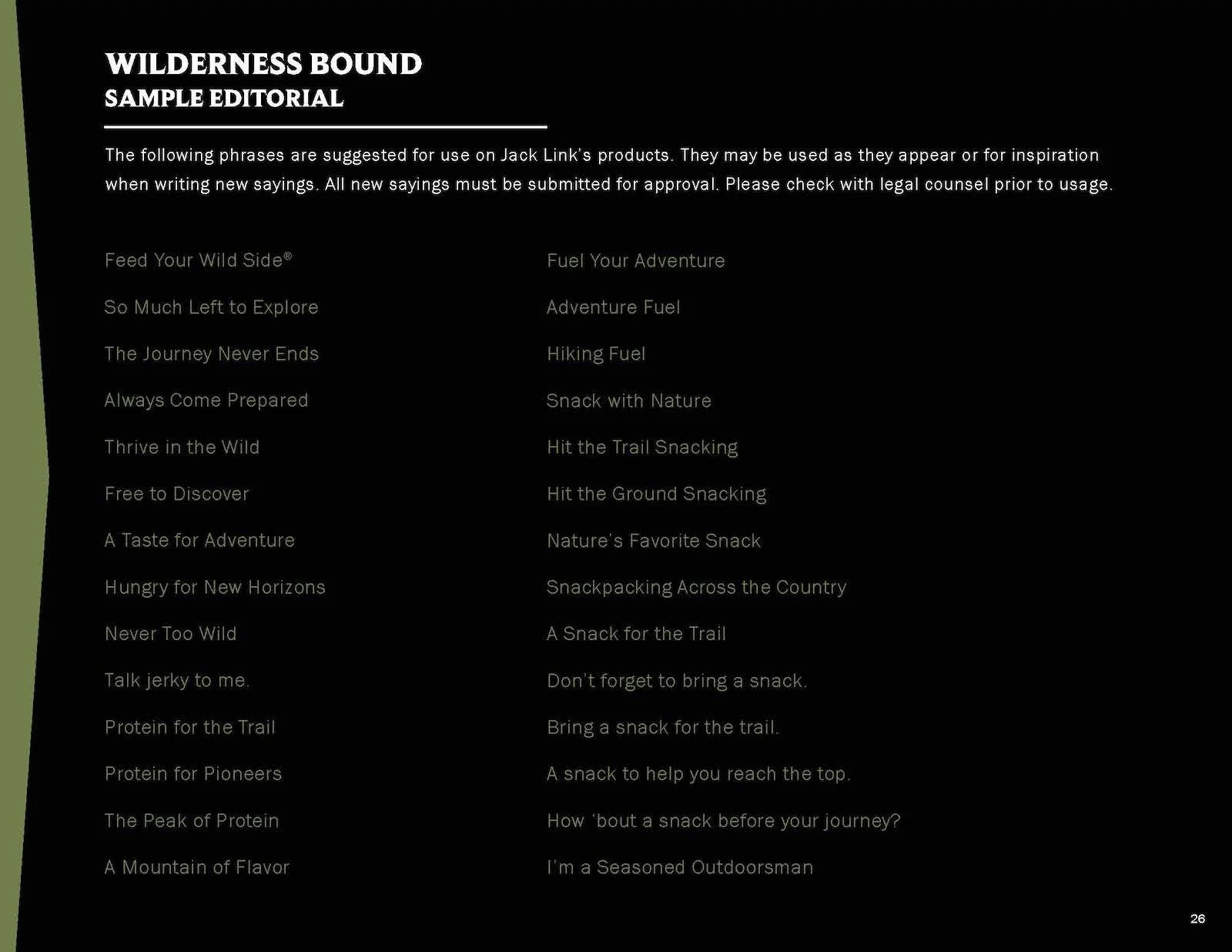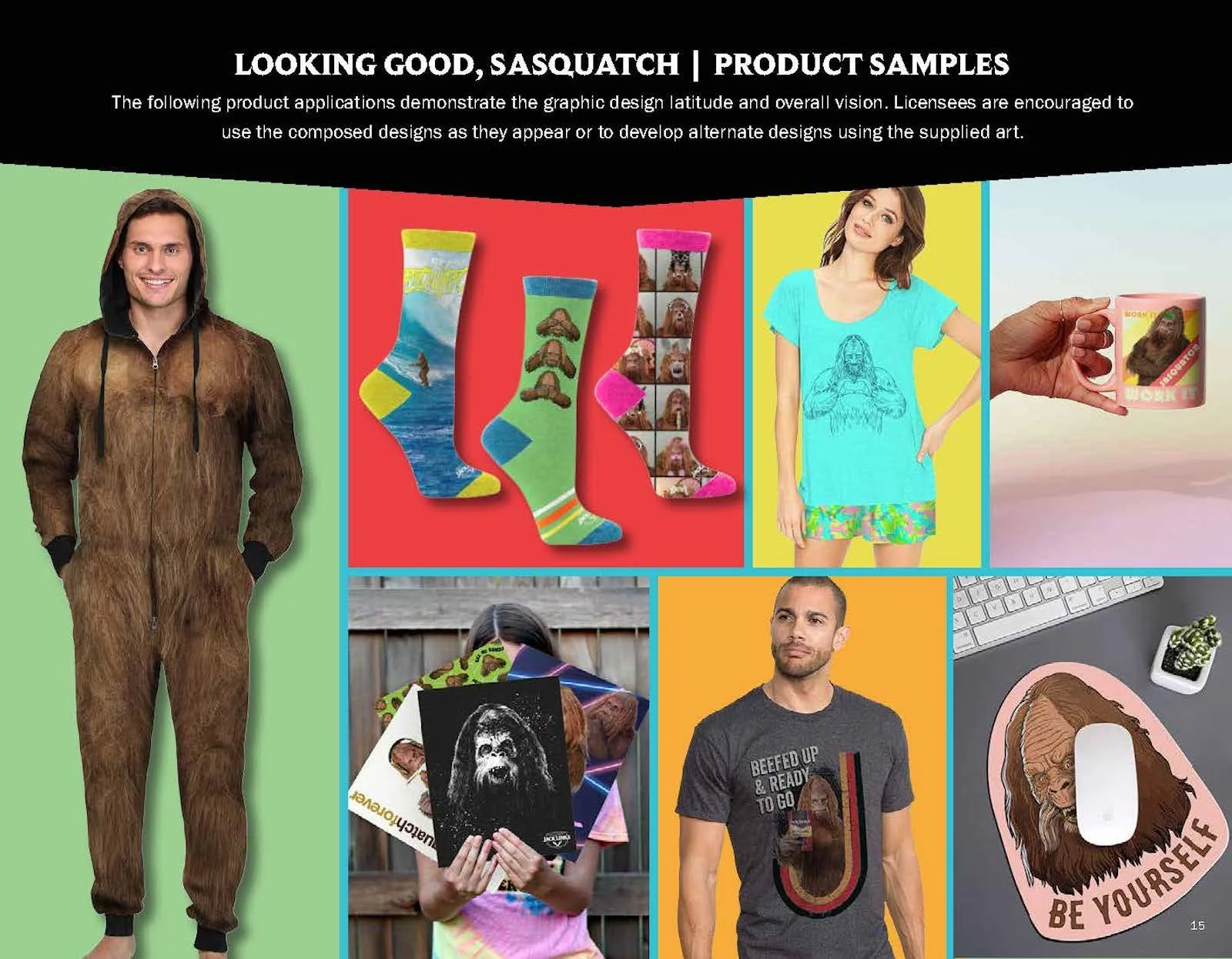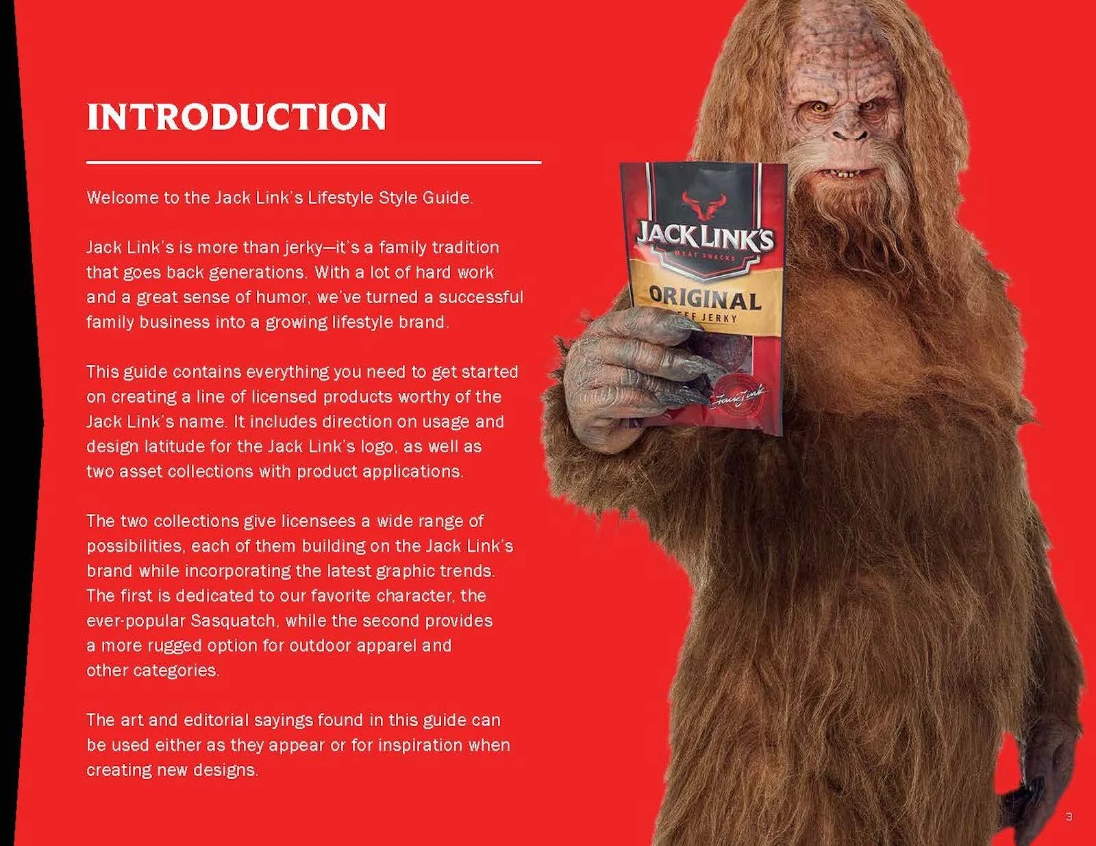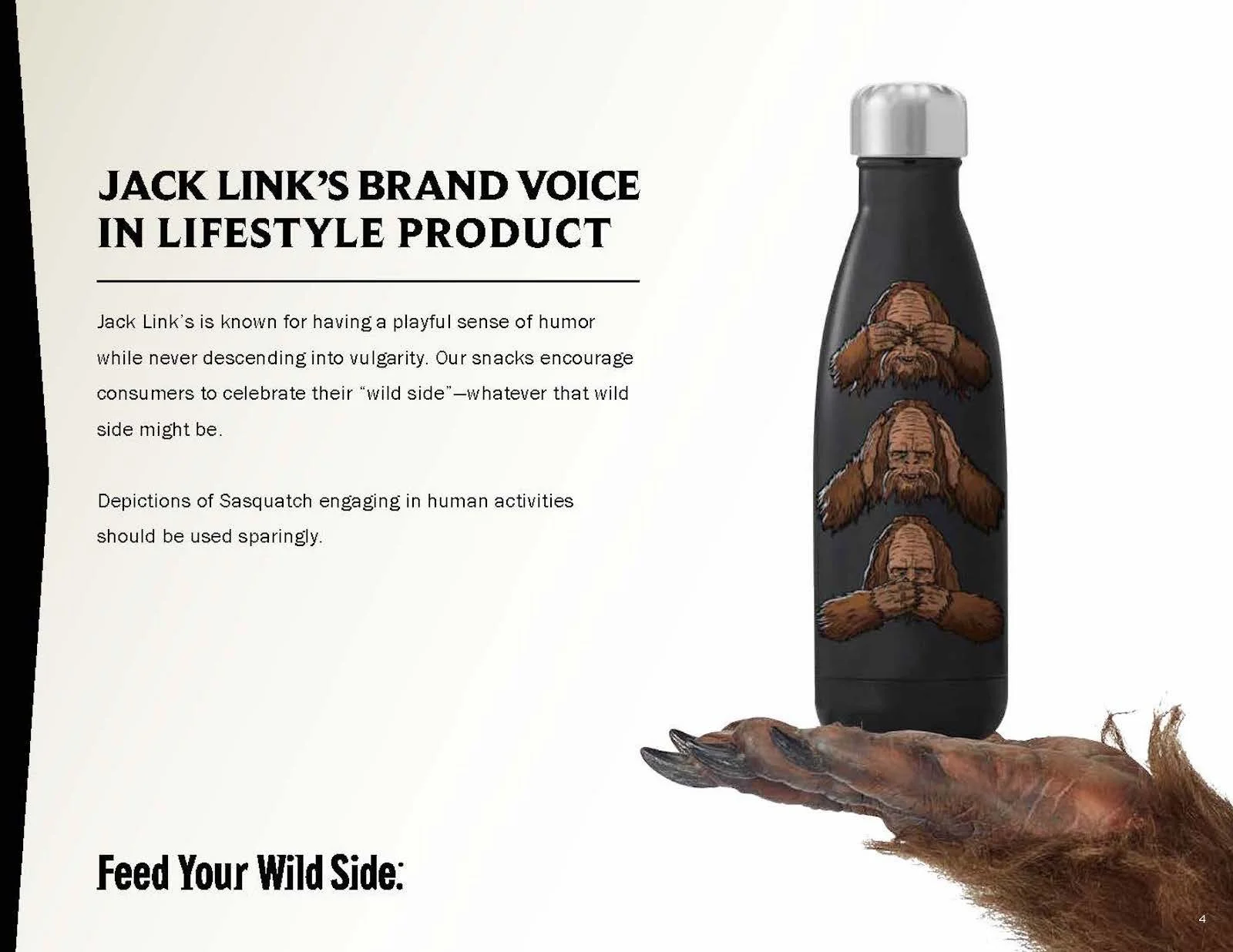 Once in a while a project comes along that calls for getting a little… weird. StyleWorks developed a licensing style guide for Jack Link’s that contained two trend collections, one an outdoor trend and the other building on the popular “Workin’ Out with Sasquatch” ad campaign. In addition to the guide copy and trend descriptions, I had a chance to dream up a variety of humorous slogans to complement the brand’s traditional tagline of “Feed Your Wild Side.”
